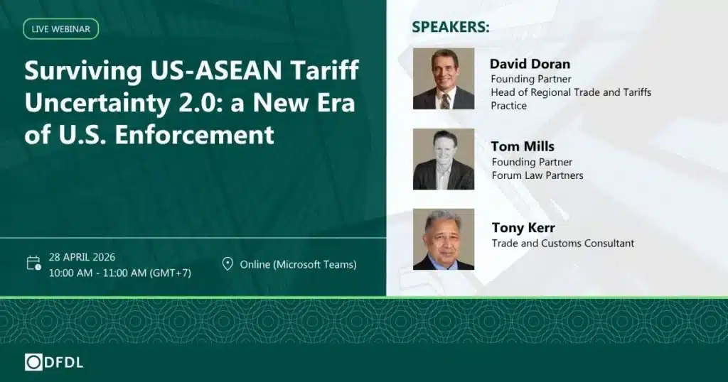 DFDL provides specialized Trade and Tariffs counsel throughout the ASEAN region. Connect with our Southeast Asia office.