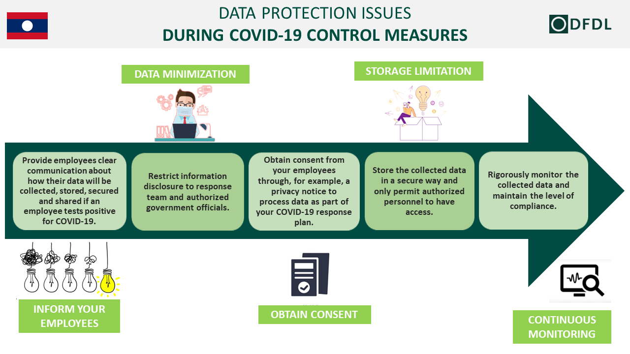 This DFDL infographic provides general guidance to HR and compliance departments as to the different steps employers should consider while collecting, monitoring and storing employees’ personal data to prevent or manage the risk of COVID-19 in the workplace. These considerations are relevant for the collection of information relating to, for example, potential COVID-19 exposure of employees, when an employee tests positive for COVID-19 and also vaccination details.